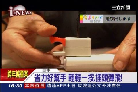 而新出爐的生活小幫手,還包括這款只要輕輕一按就會自動彈起的電源插頭。對老人家而言,新設計不僅省力,還充滿樂趣且很有快感。民眾說,彈飛的一瞬間給人感覺很可愛、很好玩,很快就拔起來真是幫了大忙!