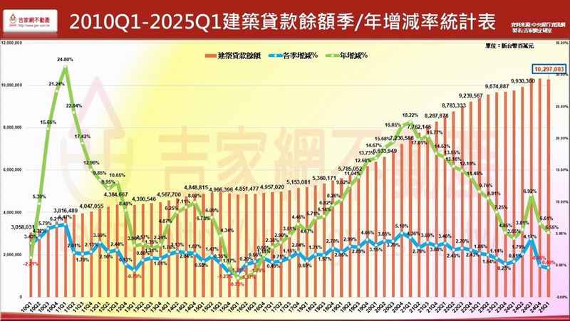李同榮指出,資金斷鏈的背後原因在於,目前建築融資餘額的年增率,已從過去2位數急劇萎縮至僅剩5.55%,且連續2季呈現負成長更為近9年首見;土地交易也大幅萎縮,顯示建商普遍面臨資金周轉困境。