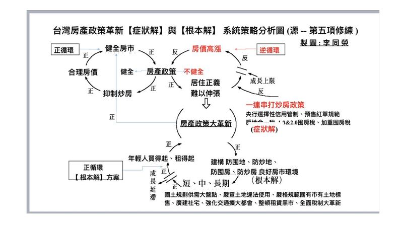 房市趨勢專家李同榮認為,台灣不能「窮到只剩打房」,與其寄望高稅負與限貸手段解決房價問題,政府更應針對供需結構出手,從國土均衡發展、社會住宅供應、交通建設、就業機會分散等面向治本。否則將導致市場扭曲、投資信心動搖,讓真正想購屋自住的民眾承受更大壓力。