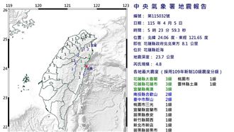 新/花蓮凌晨規模5.7地震 雙北很有感