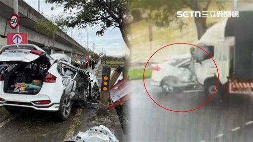 國道3車連環撞!轎車騎護欄四輪朝天